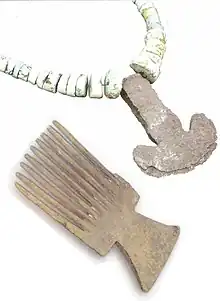 Las ofrendas recuperadas de este yacimiento constan de un bolso o chuspa de lana con decoración de franjas verticales, una escudilla de cerámica, otra similar hecha en cestería y tres peines, uno de madera y otros dos finamente trabajados con espinas de cactus.[9]