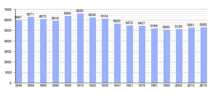 | Gráfica de evolución demográfica de Momignies entre 1846 y 2019 |