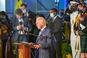 El ex primer ministro Owen Arthur convocó a un referéndum para que Barbados se convirtiera en república en 2005, [38] aunque la votación se retrasó hasta "al menos 2006" para acelerar la integración de Barbados en el Mercado Único del Caricom. El 26 de noviembre de 2007 se anunció que el referéndum se celebraría en 2008, junto con las elecciones generales de ese año. [39] Sin embargo, la votación se volvió a posponer por motivos administrativos. [40] El 20 de septiembre de 2021, poco más de un año después de que se hiciera el anuncio de la transición, se presentó al Parlamento de Barbados el proyecto de ley (enmienda) (núm. 2) de la Constitución de 2021. Aprobado el 6 de octubre, el proyecto de ley introdujo enmiendas a la constitución de Barbados, introduciendo el cargo de presidente para reemplazar al monarca de Barbados como jefe de estado. La semana siguiente, el 12 de octubre de 2021, la actual Gobernadora General de Barbados, Dame Sandra Mason, fue nominada conjuntamente por el Primer Ministro y Líder de la Oposición como única candidata a primer presidente de Barbados y posteriormente fue elegida indirectamente el 20 de octubre. Mason asumió el cargo el 30 de noviembre de 2021.