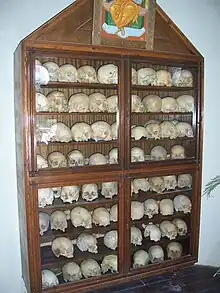 Los huesos de los muertos en el asedio de 1866 se almacenan en una vitrina. Estos huesos tienen claras huellas de los combates y están perforados como consecuencia de las balas o los golpes de espada.[51] En el monumento también hay una inscripción conmemorativa.