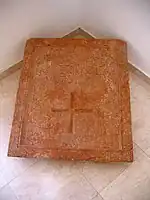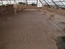 La iglesia principal estaba pavimentada con coloridos mosaicos de patrones geométricos intercalados con imágenes de animales. Una inscripción en griego menciona a los abades Genesius y Iohannes.[2]