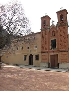 El atrio exterior se encuentra rodeado de los pasos necesarios para rezar un “via crucis”, los cuales están hechos con azulejería valenciana. El monasterio se encuentra cercado, y para acceder a la iglesia se atraviesa un patio con magníficas vistas, árboles y bancos para descansar.