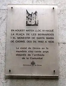 - Inscripción: "Reial Monestir de Santa Maria de Cadins"