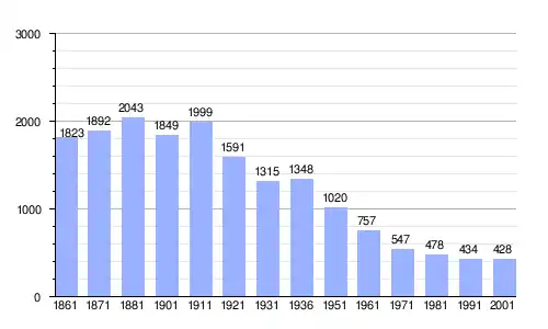 | Gráfica de evolución demográfica de Monastero di Lanzo entre 1861 y 2001 |