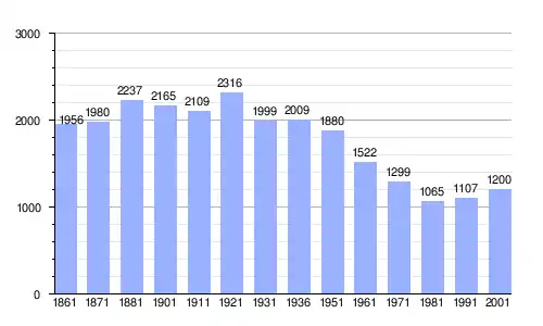 | Gráfica de evolución demográfica de Monastero di Vasco entre 1861 y 2001 |