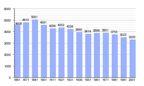 | Gráfica de evolución demográfica de Moncalvo entre 1861 y 2001 |