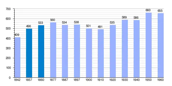 | Gráfica de evolución demográfica de Mondújar[1] entre 1842 y 1960 |