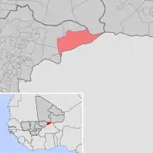 Se encuentra ubicada en el centro-este del país, cerca de la frontera con Burkina Faso y con la región de Tombuctú.