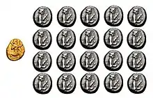 Darío introdujo la reforma del sistema monetario c. 510-500 a. C., basado en el dárico como moneda de oro y el siclo como unidad de plata, con un tipo de cambio entre ellos de un dárico por cada 20 siclos (la relación entre el valor del oro y el de la plata era de 1 a 13).[4][11]
