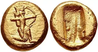 Con la conquista de Lidia y la adopción de su sistema monetario, el incipiente Imperio aqueménida logró la supremacía económica. La ceca estaba ubicada en Sardes, entonces la capital de todas las satrapías, una región que suministraba moneda circulante.[11]