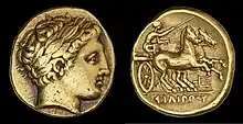 - «Kings of Lydia. Time of Cyrus to Darios I. Circa 545-520 BC. AV Stater (8.06 g)». CNC Classical Numismatig Group (en inglés). Consultado el 22 de abril de 2021.