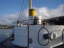 • 114,3 mm (4,5 in) en el casco central • 63,5 mm (2,5 in) en proa y popa • 139,7 mm (5,5 in) en la torre giratoria • 76,2 mm (3 in) en la torre de mando | |