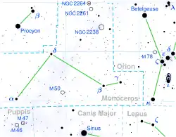 Monoceros (en griego unicornio) es una constelación en el cielo nocturno invernal del hemisferio norte, rodeada por Orión al oeste, Géminis al norte, el Can Mayor al sur e Hydra hacia el este. Otras constelaciones limítrofes son el Can Menor, Lepus y Puppis.