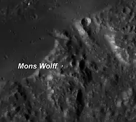 - Mons Wolff. LPI. Digital Lunar Orbiter Photographic Atlas of the Moon.