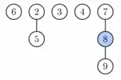 Sin embargo, se debe introducir algún orden para conseguir el tiempo de ejecución deseado. En concreto, el grado de los nodos(el número de hijos) se tiene que mantener bajo: cada nodo tiene un grado máximo de O(log n) y la talla de un subárbol cuya raíz tiene grado k es por lo menos Fk + 2 , donde Fk es un número de Fibonacci. Esto se consigue con la regla de que podemos cortar como mucho un hijo de cada nodo no raíz. Cuando es cortado un segundo hijo, el nodo también necesita ser cortado de su padre y se convierte en la raíz de un nuevo árbol. El número de árboles se decrementa en la operación Borrar mínimo, donde los árboles están unidos entre sí.