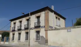 Se trata de un inmueble de dos plantas con cubierta a 4 aguas. Aunque de composición sencilla, posee una evidente voluntad de prestancia y una elegante combinación de elementos constructivos y decorativos. Las ventanas están cercadas por una moldura coronada por un remarque de ladrillo a sardinel, dispuesto a modo de arco recto. Las esquinas de la casa están también reforzadas por pilastras de ladrillo y, como elementos horizontales, destacan la línea de imposta con decoración cerámica azul y blanca entre hiladas de ladrillo, que marca la separación de ambas plantas, y el cornisamento con un sencillo alero de ménsulas de ladrillo.[13]