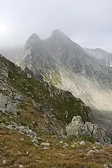 El Gran Pico visto desde el lago Galeșu.