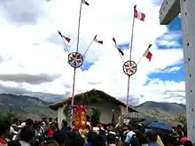 O bien en runasimi: Tsunta hirka ( montaña de los chonteros), con una leyenda sobre la invasión de los guerreros de la fronda. Estos cayeron combatiendo con sus chontas contra la etnia de los pishqupanpas.[5] Desde 1943, en su cima, cada tres de mayo se celebra un regocijo a la honra de La Cruz de Mayo. Dicha festividad y su peregrinación fue por iniciativa de Benigno Mejía. Cada año que pasa gana en convocatoria y más peregrinos. Las tinyas con sus pincullos, los wankillas con sus shaqapus, las anti-runas con sus kiyayas cascabeleras y los negritos con sus sonajas y su caporal matraquero, son las danzas que derraman holgorio y pasión en esta alta elevación, en el antiguo camino a la floresta de la yuca, café y hojas de coca.