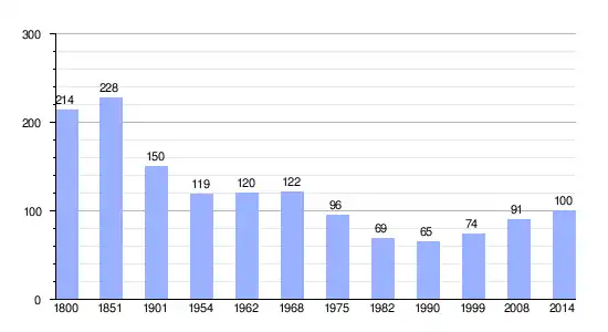 Los datos demográficos contemplados en este gráfico de la comuna de Montamy[4] se han cogido de 1800 a 1999 de la página francesa EHESS/Cassini, y los demás datos de la página del INSEE.[5]
