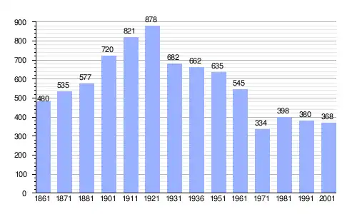 | Gráfica de evolución demográfica de Montasola entre 1861 y 2001 |