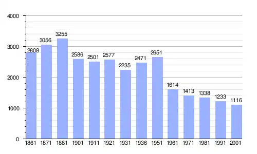 | Gráfica de evolución demográfica de Montazzoli entre 1861 y 2001 |