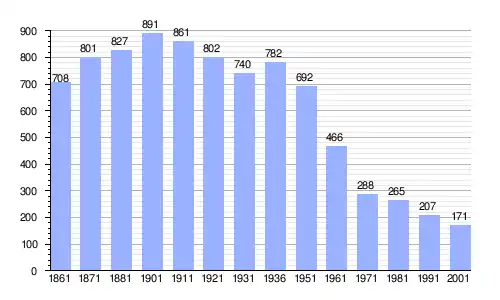 | Gráfica de evolución demográfica de Monte Cavallo entre 1861 y 2001 |