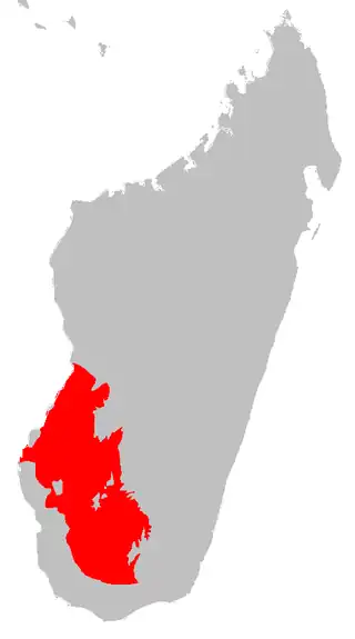 Es una ecorregión de desierto con una extensión total de unos 79.900 kilómetros cuadrados. Limita al norte con la selva seca caducifolia de Madagascar, al este con la selva subhúmeda de Madagascar a una altitud entre 600 y 800 metros, al sur con el matorral espinoso y al este con el canal de Mozambique y dos de los enclaves del manglar de Madagascar.