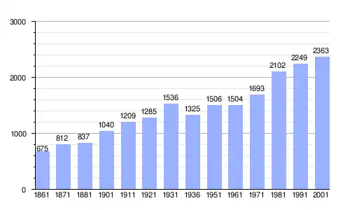 | Gráfica de evolución demográfica de Montecalvo in Foglia entre 1861 y 2001 |