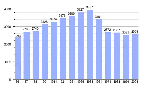 | Gráfica de evolución demográfica de Montefelcino entre 1861 y 2001 |