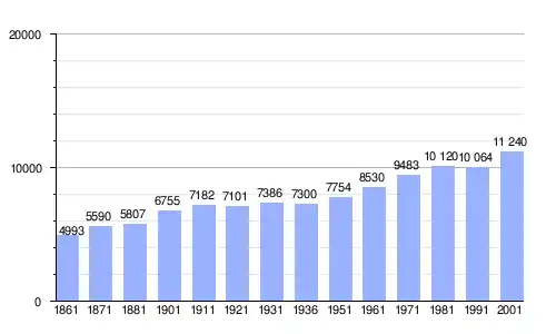 | Gráfica de evolución demográfica de Montelupo Fiorentino entre 1861 y 2001 |