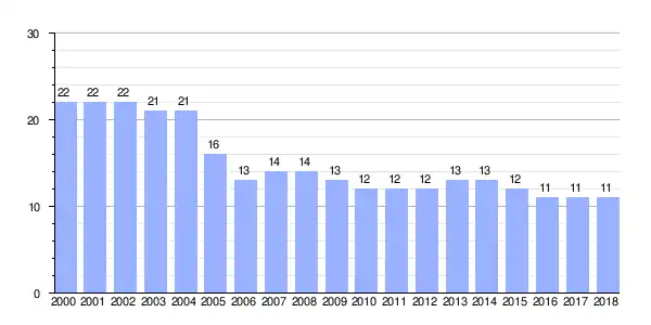 | Gráfica de evolución demográfica de Montemeá entre 2000 y 2018 |