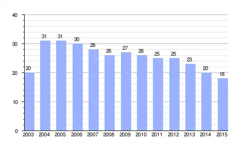 Población de derecho (2003-2015) según los censos de población del INE a 1 de enero de cada año.[1] |