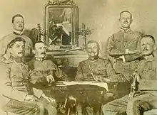 Además, el Gobierno montenegrino exiliado trató a partir de medidos de 1916 de organizar una serie de unidades que pudiesen combatir junto a los Aliados, siguiendo el modelo del ejército serbio, al que Francia había ayudado a reorganizarse.[39] A los ejércitos aliados les faltaban soldados, por lo que el rey Nicolás intentó llevar a cabo una campaña de reclutamiento de montenegrinos que debían constituir una legión para combatir en el frente macedonio.[40] Francia se mostró teóricamente favorable al proyecto que, sin embargo, fracasó por falta de voluntarios.[39] En realidad, los retrasos y las condiciones impuestas por Francia tampoco favorecieron la formación de la nueva unidad.[41]