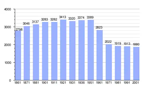 | Gráfica de evolución demográfica de Monterchi entre 1861 y 2001 |