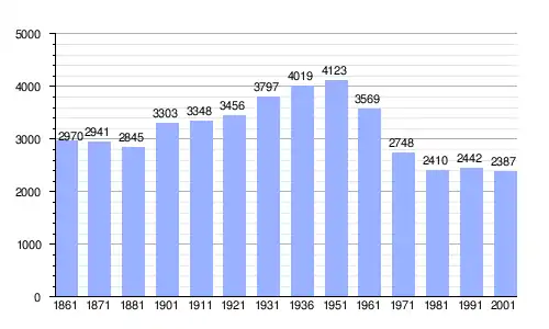 | Gráfica de evolución demográfica de Monterubbiano entre 1861 y 2001 |