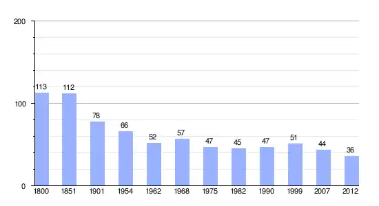 Los datos demográficos contemplados en este gráfico de la comuna de Montigny[4] se han cogido de 1800 a 1999 de la página francesa EHESS/Cassini, y los demás datos de la página del INSEE.[5]