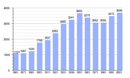 | Gráfica de evolución demográfica de Montopoli di Sabina entre 1861 y 2001 |