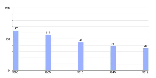 | Gráfica de evolución demográfica de Montouto entre 2000 y 2019 |