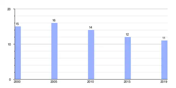 | Gráfica de evolución demográfica de Montouto entre 2000 y 2019 |