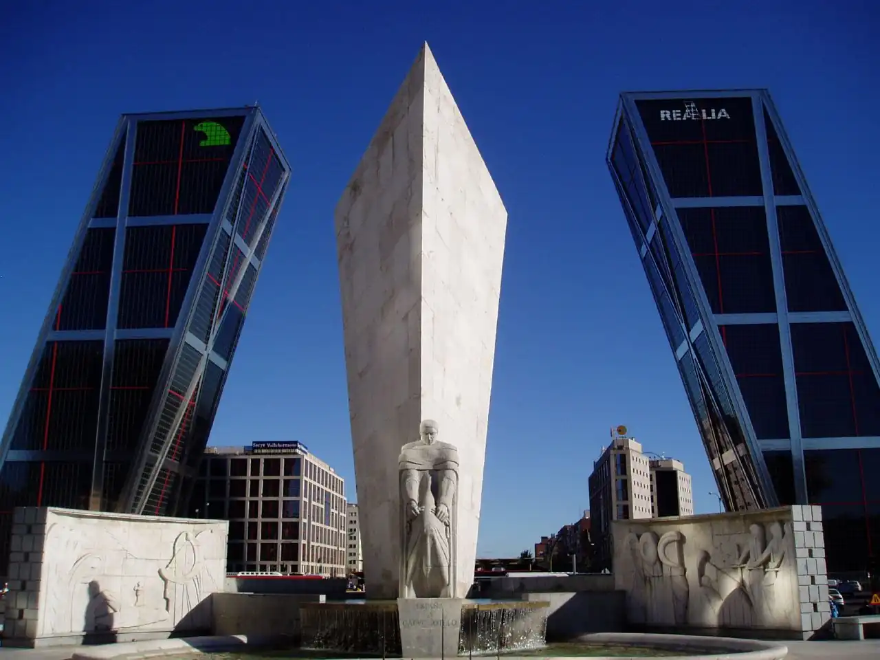 La escultura del político es obra del escultor Carlos Ferreira así como la escultura de la parte posterior "el dolor" y los bajorrelieves laterales. El conjunto y la propia elección de Ferreira corresponde al autor del proyecto, el arquitecto Manuel Manzano-Monís y Mancebo, que ganó el concurso nacional celebrado en 1957. Emplea como material constructivo piedra de colmenar que envuelve un núcleo de hormigón armado. Originalmente, ocupó el centro de la plaza de Castilla y estaba enmarcado por un fondo arbóreo de chopos que creaba el remate de la avenida. El conjunto fue desmontado y restaurado de acuerdo con el proyecto original y la aquiescencia del autor del proyecto en 1992. La obra fue dirigida por el arquitecto Manuel Manzano-Monís y López-Chicheri, hijo del anterior, que utilizó para ello los planos originales de su padre.
