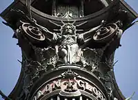 | Alegorías de los Cuatro Continentes | Leoncio Serra | Bronce | 1,10 x 0,90 x 0,30 cada una | En el capitel de la columna se hallan cuatro relieves con alegorías de Europa, África, Asia y América.[13] | ![]() |