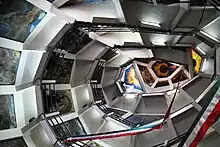 En los muros de la escalera que presenta 5 niveles, se ubican murales obra de Ramón Alva de la Canal los cuales se encuentran distribuidos en 56 paneles que narran la historia de José María Morelos y Pavón y hechos de la Independencia de México.