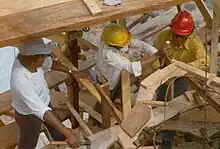 Para la creación de esta obra fue necesaria la colaboración de toda la población de Belén, que aportó su ayuda subiendo al cerro, a pulso y/o en burros, el material necesario, piedras, ripio, agua, cemento, maderas, hierros, etc., todo material controlado en la cumbre y lavado allí mismo en piletas preparadas para tal efecto.