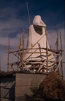 La obra fue modelada in situ, durante tres años de trabajo, afrontando el invierno con sus nieves y el verano con sus grandes calores. Con la colaboración permanente de 16 obreros, Ferrino fue levantando esta obra de ingeniería de avanzada, preparada para desafiar los fuertes embates del Zonda y los movimientos telúricos, ya que hubo que dinamitar previamente el cerro "El Tiro" para anclar la base-zapata del monumento a la roca viva de la montaña.