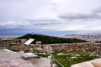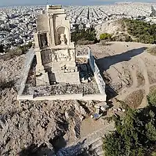 El monumento de Filopapo (en griego: Μνημείο Φιλοπάππου, romanizado: Mnimio Filopappu) es un mausoleo construido entre los años 114 y 119 d. C .en la ciudad de Atenas. Está dedicado a Filopapo, cónsul y magistrado honorario en Atenas y nieto y último descendiente conocido de Antioco IV, l último rey de la región anatólica de Comagene, reino incorporado al Imperio romano.[1] Se trata de un monumento de arte grecorromano con importantes influencias orientales, procedentes de Comagene.[2] El monumento de Filopapo no ha sido excavado, simplemente ha permanecido sobre la colina en lo que fue construido en el siglo II d. C.,[3] y se encuentra bastante dañado. Por su ubicación es uno de los monumentos que definen la ciudad de Atenas.