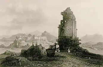 Pese a las dimensiones y emplazamiento del monumento, este dejó poco rastro escrito en la antigüedad. El único testimonio que escribe sobre el mausoleo fue el historiador y viajero Pausanias (115-180 d. C), que en su obra Descripción de Grecia comenta simplemente que el monumento era "la tumba de un sirio".[9] No fue hasta el siglo XV en el que el viajero Ciriaco de Ancona describió el monumento en detalle y copió las inscripciones en latín y griego,[8] que han permitido que en la actualidad se conozca bien el estado del monumento en aquella época.[10][8]