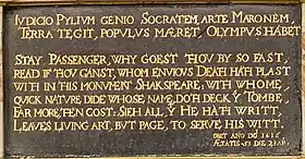 WITH IN THIS MONUMENT SHAKESPEARE: WITH WHOME