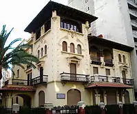 Fue realizado este edificio por el arquitecto Miguel Ángel Navarro en el año 1929, lo más sobresaliente de su estructura es la gran rotonda que tiene en el centro cubierta con una cúpula. Es de estilo clasicista y ecléctico, consta de una gran fachada en chaflán, donde se aprecian cuatro enormes columnas, en la parte superior se encuentra un frontón con esculturas en relieve de Antonio Torres.