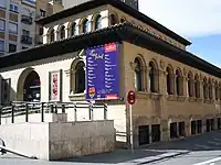 Situado en la plaza de los Sitios, fue edificado entre 1911 y 1919 en estilo neorrenacentista y proyectado por José Yarza. Su fachada principal resalta sobre el chaflán de trazo elíptico, construido con materiales de piedra y ladrillo, presenta un alero en madera y una decoración escultórica. El edificio formó parte de la urbanización de la zona realizada con motivo de la celebración de la Exposición Hispano-Francesa de 1908.