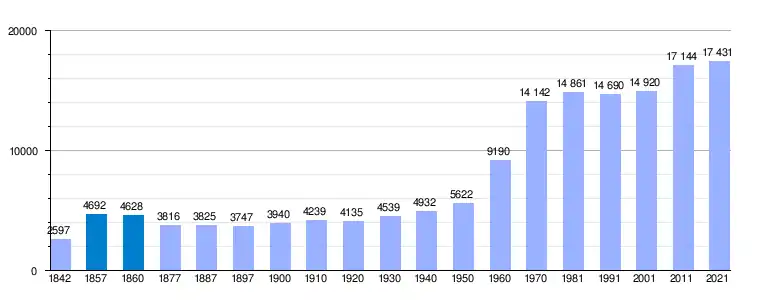 | Gráfica de evolución demográfica de Monzón[6] entre 1842 y 2021 |